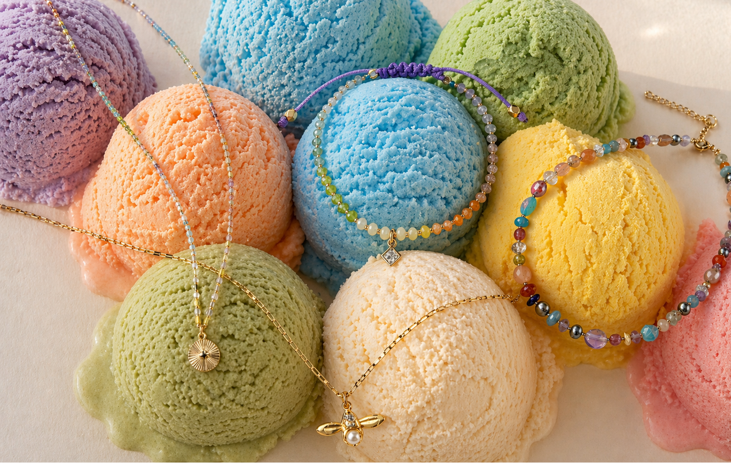 Step into spring with a collection of one-of-a-kind necklaces and bracelets, handcrafted in luminous gemstones and warm golden details. Playful yet refined, each piece captures the sweetness, color, and easy elegance of the season.