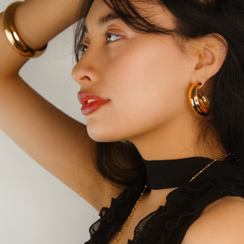 Everri polygonal resin bangles in green, burgundy, tortoiseshell, amber, and marbled brown—stackable statement bracelets for modern, everyday style.